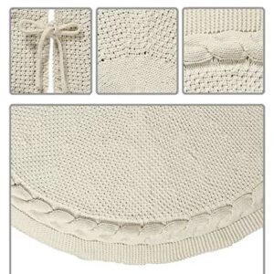 cream knit Christmas tree skirt, cable knit tree skirt, rustic farmhouse holiday décor, sweater knit tree skirt 36 inch, neutral Christmas tree skirt, cozy cream holiday décor
