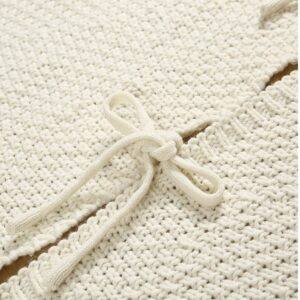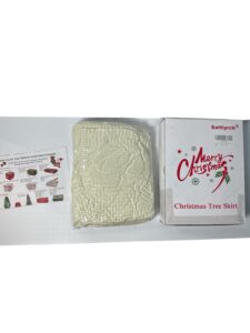 The tree skirt includes multiple knit ties along the back opening, making it easy to wrap around the base of your tree and secure in place. Sized at approximately 36 inches in diameter, it is ideal for most 4–6.5 ft trees and helps hide the tree stand and cords while giving your space a warm, finished look.