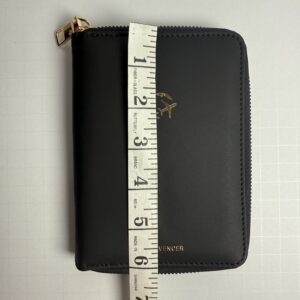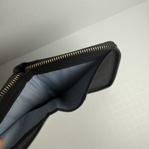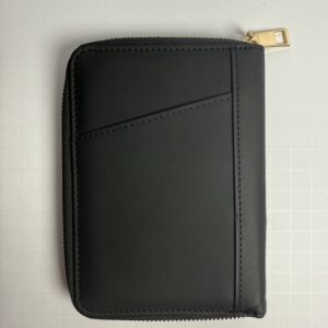 This sleek black zip-around travel wallet keeps your essentials secure and organized wherever you go. Crafted from smooth faux leather with gold-tone details, it’s compact yet spacious enough to hold your passport, cards, cash, and tickets.