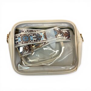 Stay stylish while meeting stadium security requirements with this clear crossbody bag in a versatile beige tone. Designed for concerts, sporting events, and festivals, this transparent purse keeps your essentials visible and accessible while maintaining a clean, modern look.
