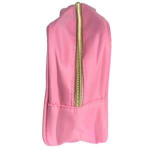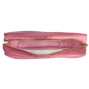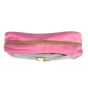 The chenille-style letter patch is outlined in gold for a chic, preppy look. Perfect for travel, gym bags, school, dorm life, or everyday makeup storage.