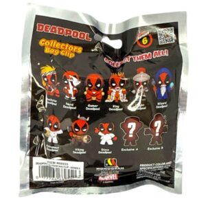 Officially Licensed 1 blind bag Deadpool Dressed in costume like Deadpool Rockstar Nerd gamerKing Knight Wizard Astronaut Viking Disco dancer and moreShow it off on you backpack, book bag, keychain, purse, gym bag, Clip allows for easy hanging about anywhere.receive 1 Blind Bag from Collection. NO GUARANTEE of which one you will receive Perfect something for the fan of the deadpool Movie or Marvel Comic Books. makes a Great Christmas Stocking Stuffer, Birthday PresentDeadpool themed collectors bag clip Perfect for fans and collectors