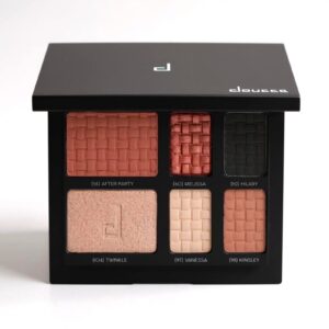 Each eyeshadow shade is thoughtfully curated to blend seamlessly, from a velvety matte neutral to shimmering accents, ensuring endless possibilities for day-to-night transformations. The blush adds a natural flush of color, while the highlighter enhances your features with a radiant glow.
