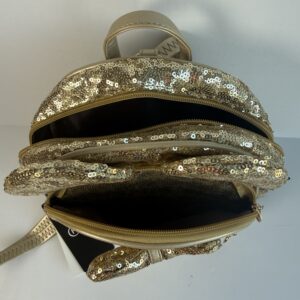 Add a little sparkle to your outfit with this eye-catching gold sequin mini backpack by KL928 ✨