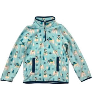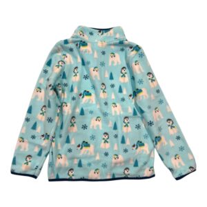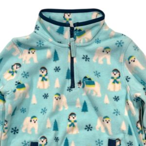 This Gymboree fleece pullover is perfect for cold-weather adventures and everyday cozy wear. Made from soft polyester fleece, it features an allover winter polar bear print in a mint tea colorway with navy trim accents.