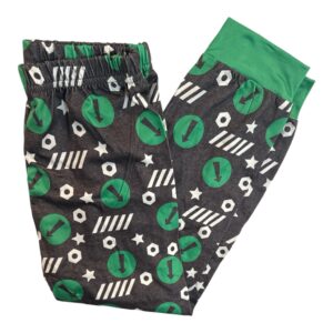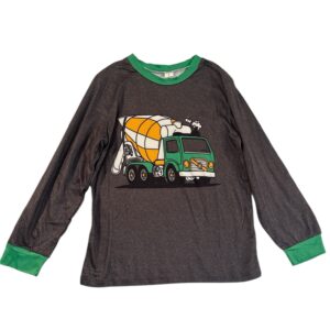 This kids pajama set features a playful construction truck design with coordinating pants.