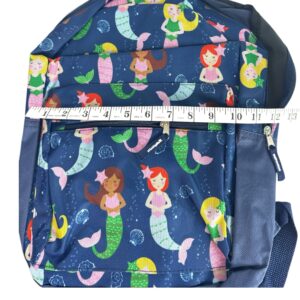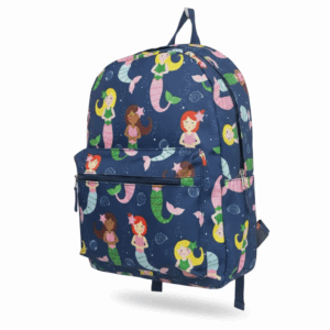 Designed in a deep navy blue with colorful mermaids, shells, and sea details, this backpack is both fun and functional for little ones.
