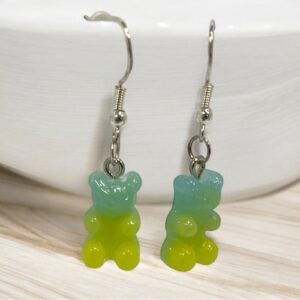 Y2K gummy bear earrings silver blue green resin pierced New with tags