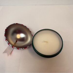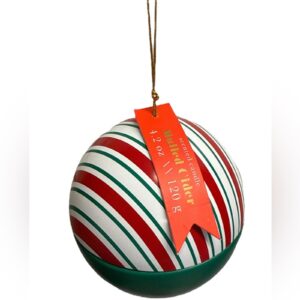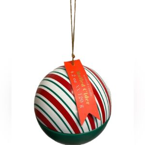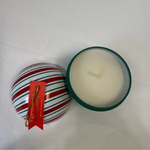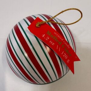 Brighten your holiday decor with this festive striped ornament candle.
