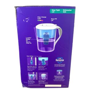 Enjoy cleaner, better-tasting water with this PUR 11-Cup Water Filtration Pitcher System. This unit is new and unused, with the box opened only for inspection. The pitcher and filter remain sealed in original packaging.