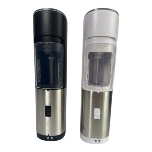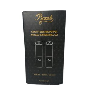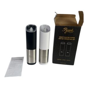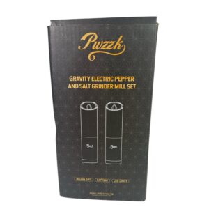 This Puzzk gravity electric grinder set includes two stainless steel mills — one black and one white — designed for effortless hands-free grinding. Simply tilt the grinder and it automatically activates, making seasoning quick and convenient while cooking or serving.