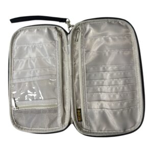 RFID travel wallet, passport holder organizer, black travel pouch, document case with wrist strap, RFID blocking passport wallet, travel accessories