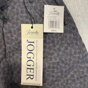 These Royalty For Me jogger pants are new with tags and designed for all-day comfort. Made from a soft cotton-blend fabric with stretch, they feature a subtle tribal ditsy print, elastic waistband with drawstring, and a relaxed jogger fit. Perfect for casual wear, lounging, or running errands.