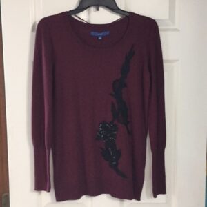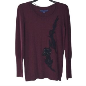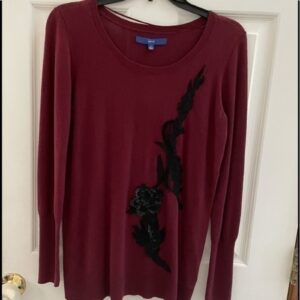 Apt 9 Sequin and Lace Appliqué Maroon and Black Long Sleeve Sweater Top