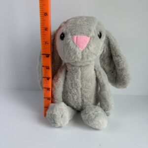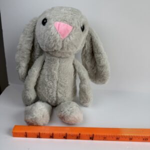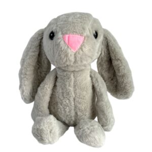 This soft gray plush bunny rabbit is the perfect cuddly companion for children or gift-giving occasions. Made from ultra-soft plush fabric with a sweet pink triangular nose and long floppy ears, this stuffed animal has a timeless and comforting look.