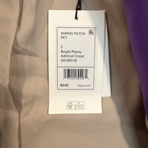 Elevate your wardrobe with this stunning Theory Shrunken Patch Pocket Blazer, crafted in luxurious Admiral crepe for a polished yet modern silhouette. Designed with a tailored “shrunken” fit, this blazer features classic notch lapels, patch pockets, and a vibrant Bright Peony purple hue that makes a confident statement.