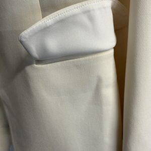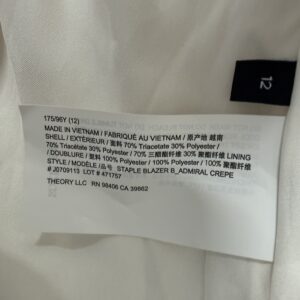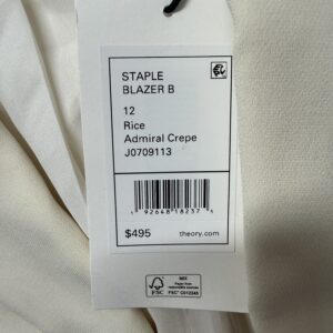Crafted in Theory’s signature stretch crepe fabrication (70% Triacetate / 30% Polyester), this blazer delivers a refined drape with structure and comfort. The soft ivory “Rice” color makes it a versatile year-round neutral — perfect for workwear, bridal events, graduations, or elevated everyday styling.