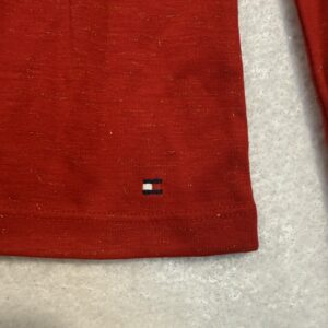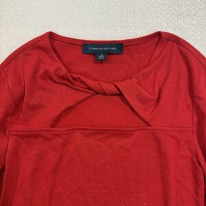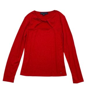 Tommy Hilfiger Red Lurex Twist Neck Top XS | Long Sleeve Knit Cutout Blouse