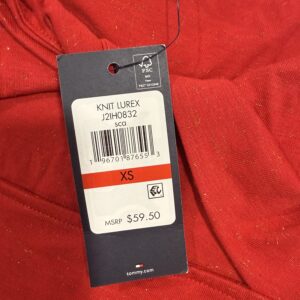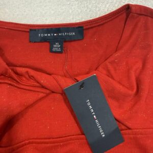 Elevate your seasonal wardrobe with this Tommy Hilfiger red lurex knit top, new with tags.