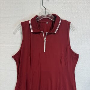 FKEEP Women’s Tennis and Golf Dress in a rich burgundy tone, designed for performance, comfort, and flattering athletic style.This sleeveless sport dress features a structured collar with white trim and a quarter-zip neckline for adjustable comfort. The fabric blend offers stretch and breathability, making it ideal for tennis, golf, workouts, or everyday athleisure wear.